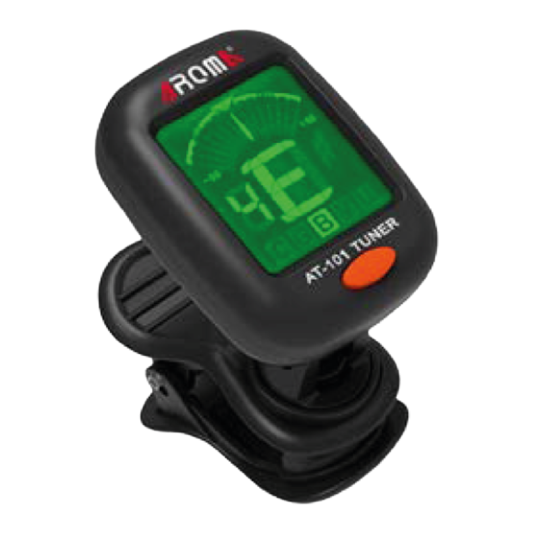El Aroma AT-101 es un afinador cromático clip-on pensado para guitarras, bajos, violines, ukuleles y más. Se engancha al clavijero, detecta por vibración (no capta ruido ambiente), tiene pantalla clara y se apaga solo si no lo usás. Perfecto para quienes quieren practicidad, ligereza y precisión sin complicaciones.