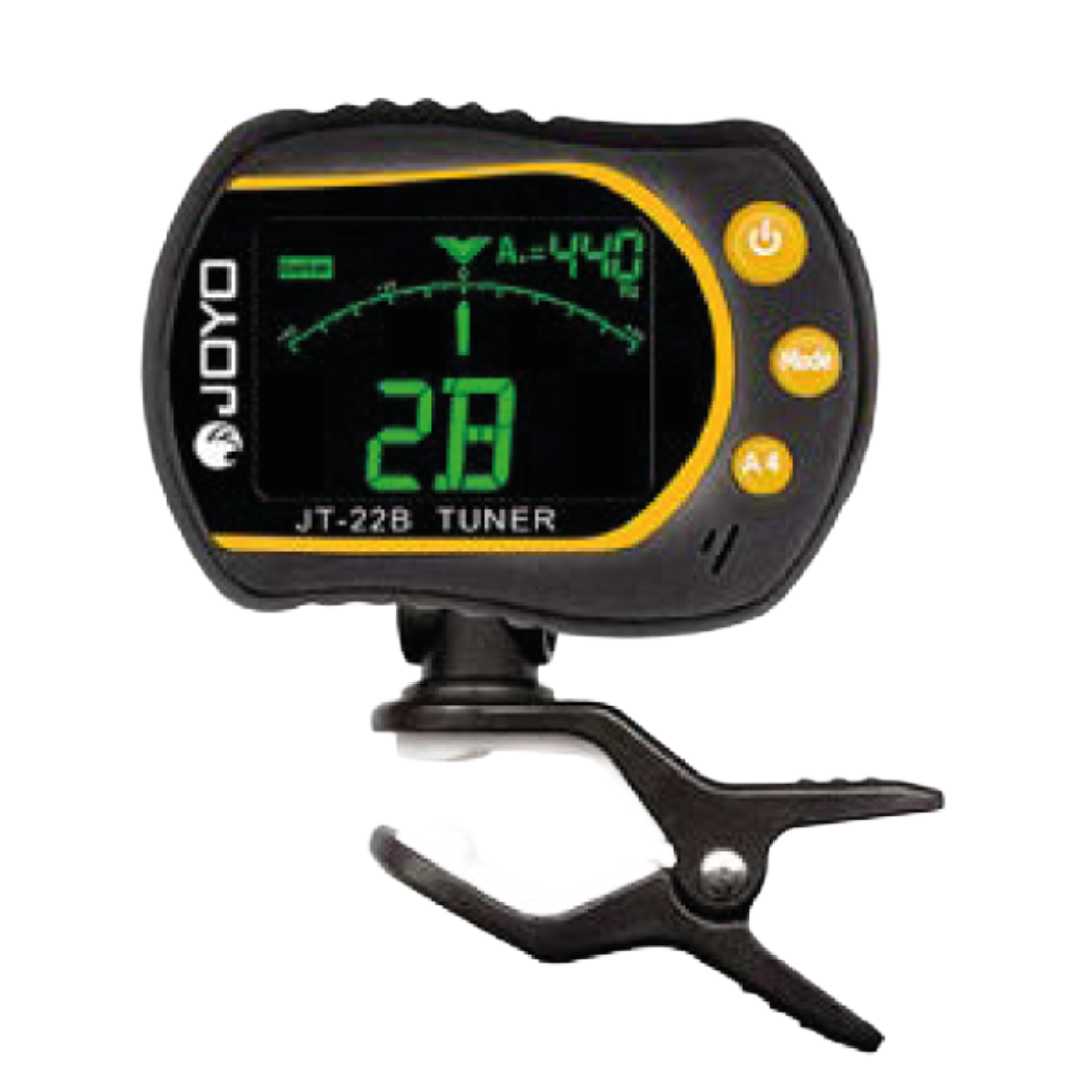 El JT-22B es un afinador clip-on cromático que se acopla sobre el cabezal del instrumento, detecta vibraciones y sonido ambiente, con pantalla LCD iluminada. Perfecto para guitarra, bajo, violín, ukulele, etc. Es útil tanto en ensayos como en presentaciones, porque lo ves fácilmente aún con poca luz y podés ajustar el tono base para adaptarlo a tus necesidades.